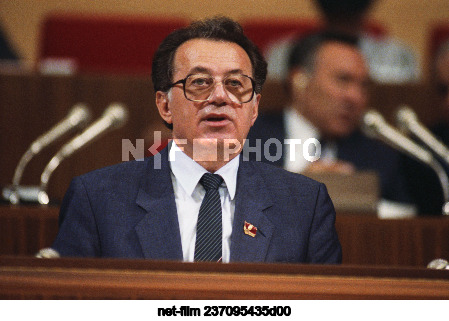 СССР. Москва. Народный депутат СССР, секретарь ЦК КПСС, кандидат в члены Политбюро ЦК КПСС, председатель Комиссии ЦК КПСС по вопросам партийного строительства и кадровой политики Георгий Петрович Разумовский во время выступления на заседании XXVIII съезда Коммунистической партии Советского Союза в Кремлевском Дворце съездов. Александр Чумичев/ТАСС