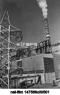 СССР. Бурятская АССР. Гусиноозерск. Главный корпус Гусиноозерской ГРЭС и линии электропередачи, подающие электроэнергию в Читинскую область и Монголию. Владимир Матвиевский/ТАСС
