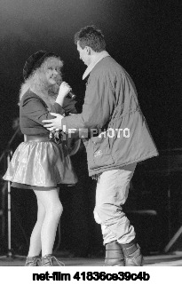 Россия. Москва. Народная артистка СССР, эстрадная певица Алла Борисовна Пугачева и зритель, откликнувшийся на песню "Приглашение на танец" на одном из 23 концертов в рамках гастролей в Южно-Сахалинске, Уссурийске, Владивастоке, Хабаровске, Комсомольске-на-Амуре, Екатеринбурге и Уфе, организованного фирмой "Ангажемент". Олег Булдаков/ТАСС
