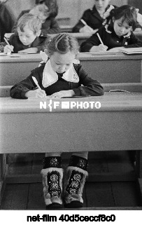 Январь-март 1980 г. СССР. Иркутская область. Ученики младших классов во время урока в школе села Ербогачен Катангского района. Точная дата съемки не установлена. Эдгар Брюханенко/ТАСС