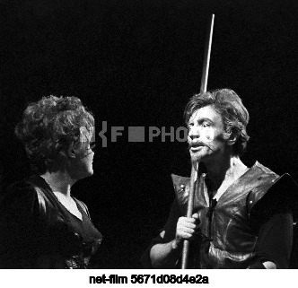 1-17 сентября 1972 г. СССР. Москва. Актеры Татьяна Васильевна Доронина (Альдонса) и Александр Сергеевич Лазарев (Сервантес, Дон-Кихот) в музыкальном спектакле "Человек из Ламанчи" в постановке Андрея Александровича Гончарова в Московском академическом театре имени Вл. Маяковского. Спектакль поставлен по мотивам бродвейского мюзикла, написанного Дейлом Вассерманом, Джо Дэрионом и композитором Митчем Ли. Точная дата съемки не установлена. Михаил Строков/ТАСС