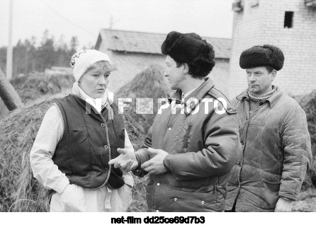 СССР. Новгородская область. Главный ветеринарный врач совхоза "Ленинские дни" Н.И. Морозова, руководитель коллектива, арендовавшего у совхоза "Ленинские дни" села Едрово Валдайского района ферму, ветеринарный врач, кооператор Сергей Владимирович Никулин и тракторист А.И. Федоров (слева направо) во время обсуждения производственных вопросов. Александр Овчинников/ТАСС