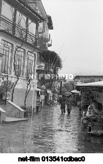 Апрель 1990 г. Италия. Прохожие у отеля "Сала Альберго" (слева) на улице Витта Витторио Венето в коммуне Вальброна на озере Лаго-Маджоре в провинции Пьемонт. Точная дата съемки не установлена. Алексей Жигайлов/ТАСС