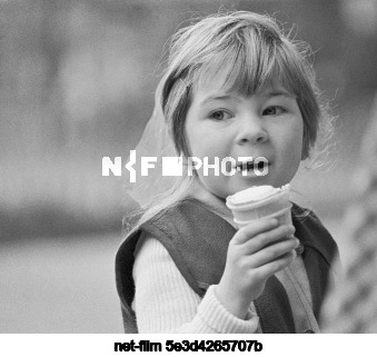 1-26 мая 1978 г. СССР. Москва. Девочка с мороженым в вафельном стаканчике. Точная дата съемки не установлена. Людмила Пахомова/ТАСС