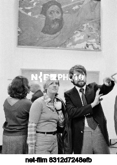 СССР. Москва. Посетители персональной выставки работ заслуженного деятеля искусств РСФСР художника Ильи Сергеевича Глазунова во время осмотра экспозиции в Центральном выставочном зале на площади имени 50-летия Октября. Валентин Мастюков/ТАСС