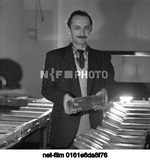 1-19 декабря 1989 г. СССР. Москва. Начальник Государственного хранилища ценностей СССР Р.Г. Ганеев с золотым слитком весом 12 килограмм. Точная дата съемки не установлена. Геннадий Хамельянин/ТАСС