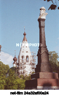 Июль 1990 г. СССР. Ивановская область. Плес. Памятник основателю города, Великому князю Владимирскому и Московскому Василию I Дмитриевичу работы скульптора Сергея Семеновича Алешина и собор Успения Пресвятой Богородицы (на дальнем плане), построенный в конце XVII века, на Соборной горе. Точная дата съемки не установлена. Иван Куртов/ТАСС