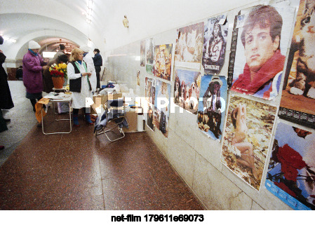 1 ноября - 23 декабря 1990 г. СССР. Москва. Розничная торговля плакатами и календарями в переходе станции метро "Баррикадная" Таганско-Краснопресненской линии Московского метрополитена имени В.И. Ленина. Точная дата съемки не установлена. Игорь Зотин/ТАСС