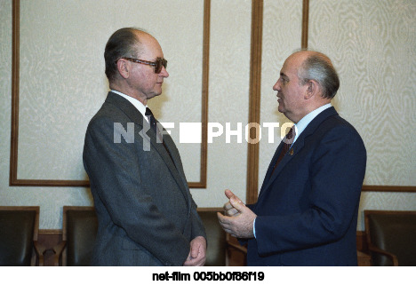 СССР. Москва. Первый секретарь ЦК Польской объединенной рабочей партии, Председатель Государственного Совета Польской Народной Республики Войцех Ярузельский и Генеральный секретарь ЦК КПСС Михаил Сергеевич Горбачев (слева направо) во время встречи в Кремле. Юрий Лизунов, Александр Чумичев/ТАСС