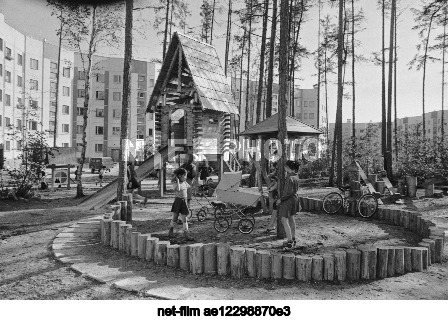 Август 1984 г. СССР. Бурятская АССР. Северобайкальск. Дети на игровой площадке во дворе одного из жилых домов города. Точная дата съемки не установлена. Эдгар Брюханенко, Григорий Калачьян/ТАСС