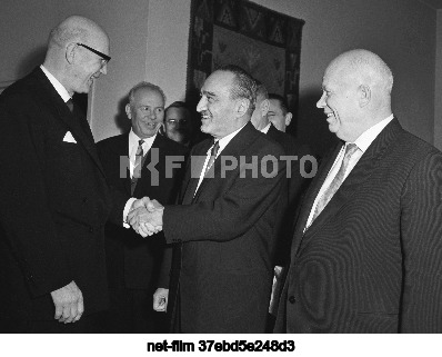 30 ноября - 1 декабря 1963 г. СССР. Московская область. Президент Финляндии Урхо Калева Кекконен, секретарь ЦК КПСС Николай Викторович Подгорный, первый заместитель Председателя Совета министров СССР Анастас Иванович Микоян и первый секретарь ЦК КПСС, Председатель Совета министров Никита Сергеевич Хрущев (слева направо) во время встречи на государственной даче в Одинцовском районе. Точная дата съемки не установлена. Валентин Соболев/ТАСС