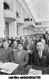 СССР. Москва. Депутаты от Казахской ССР во время совместного заседания Совета Союза и Совета Национальностей в ходе пятой сессии Верховного Совета СССР одиннадцатого созыва в Большом Кремлевском дворце. Василий Егоров, Валентин Мастюков/ТАСС